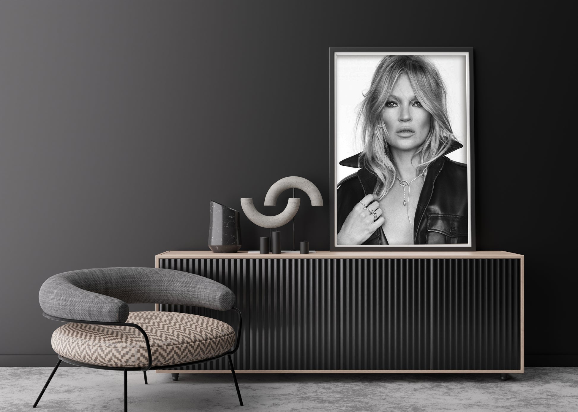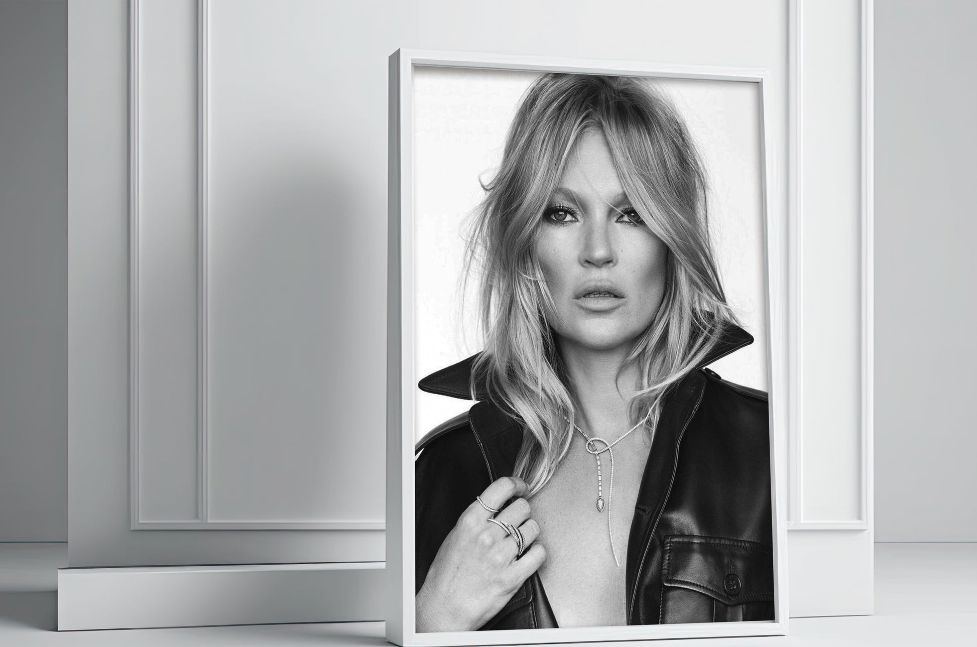 A striking art print celebrating Kate Moss, the iconic fashion figure. This modern piece brings runway glamour and vintage-cool edge to any room, bedroom, office, hallway, or living space. Perfect for fashion enthusiasts and style-conscious collectors seeking bold, personality-driven décor.