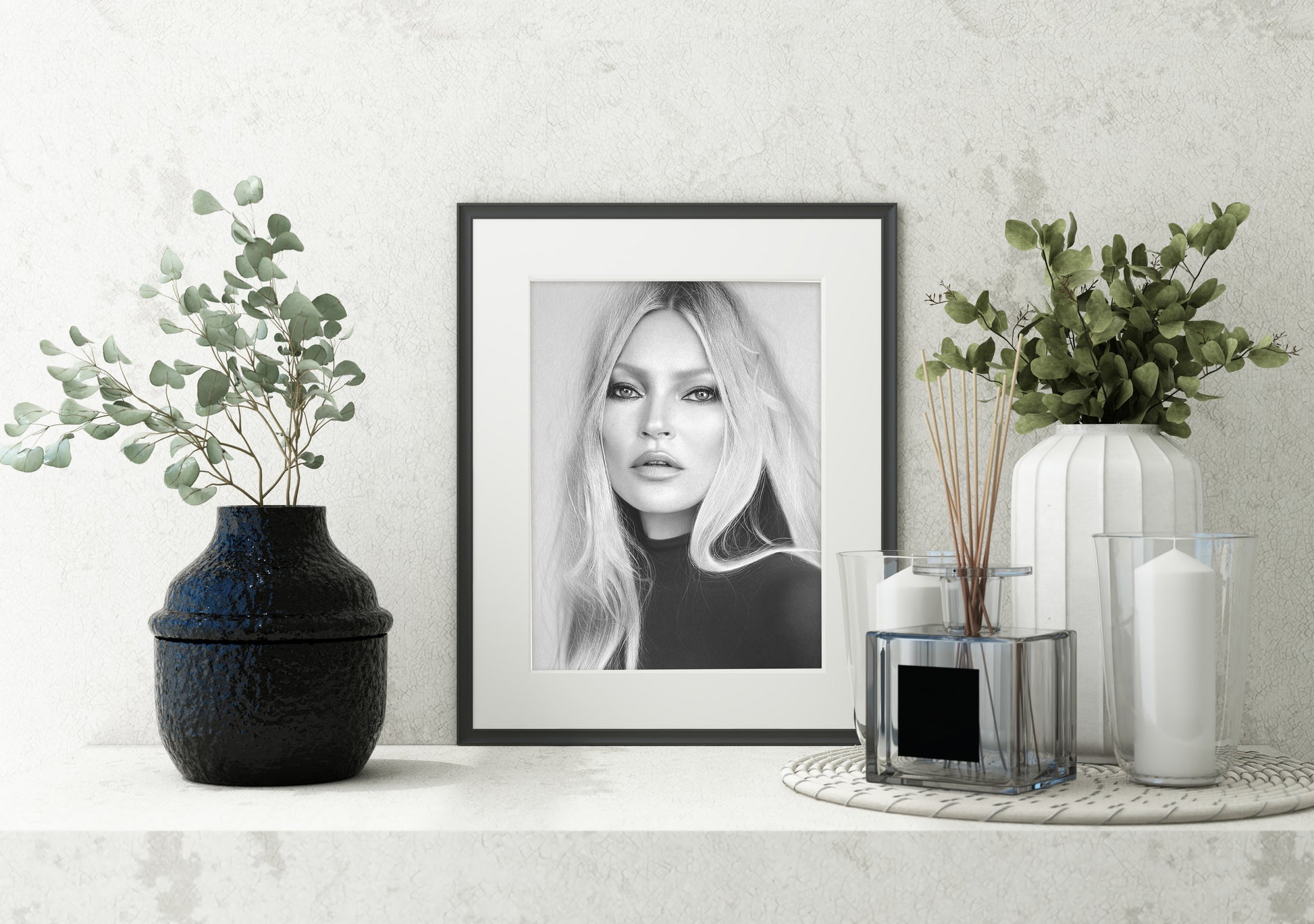 This contemporary Kate Moss print honours a pivotal fashion legacy with understated sophistication and enduring allure. Perfect for curating refined interiors across bedrooms, home offices, galleries, and social spaces, it appeals to discerning collectors who value authentic cultural moments. A statement piece for those who recognise style as substance.