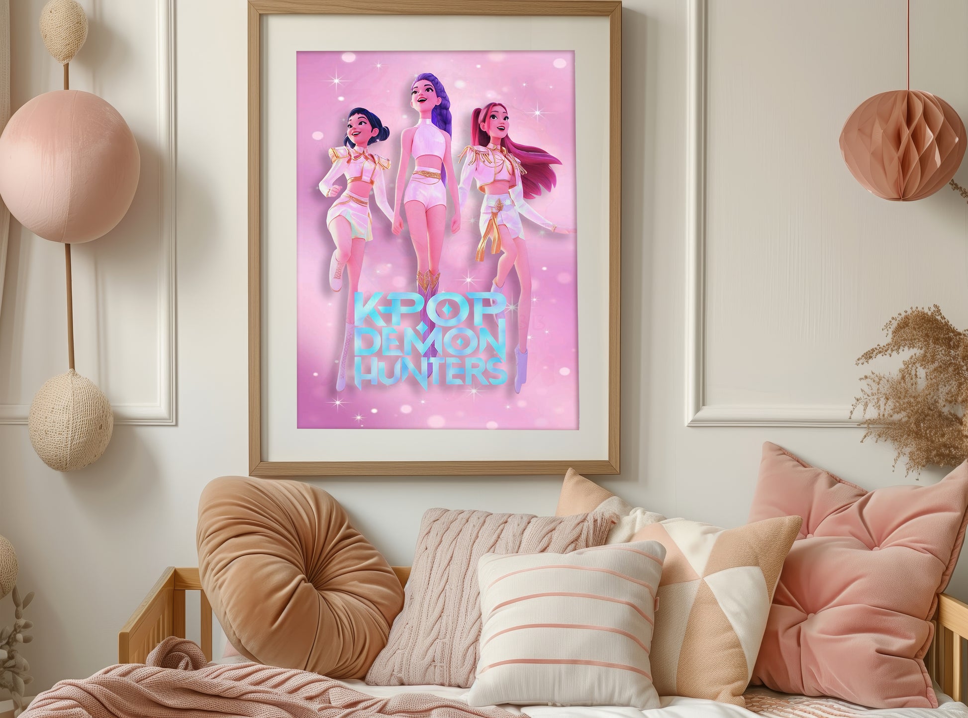 Bring your walls to life with this vibrant Demon Hunter Kpop poster that's as bold as your fandom spirit. Pick your favourite from three eye-catching colour options to match your vibe, pop it in a frame, and watch your space transform. Perfect for superfans and K-pop enthusiasts alike, this print is the ultimate way to celebrate your passion while adding serious style to any room.
