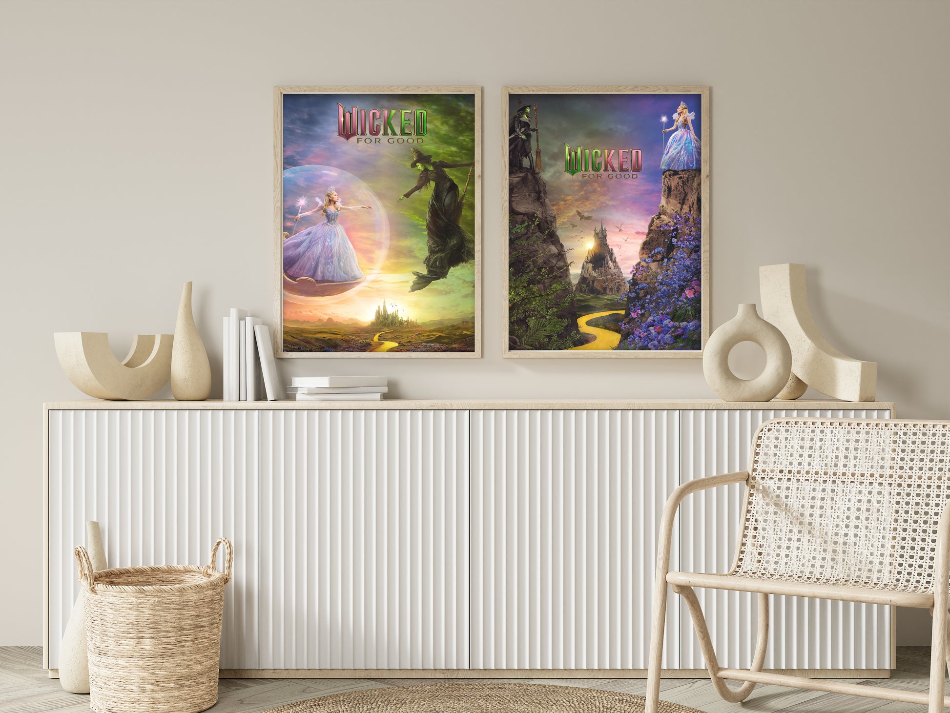 Relive the drama as Elphaba and Glinda's friendship takes centre stage in this vibrant Wicked Movie Poster! Watch as these two iconic characters forge their legendary identities - one wickedly green, one gloriously good and discover how their choices ripple through the entire land of Oz. Pop it in your favourite frame and let the magic unfold on your wall. Whether you're flying solo with this showstopper or building a gallery of theatrical treasures, it's the perfect way to celebrate your love for this spellbinding saga. An absolute must-have for any devoted Wicked fan!