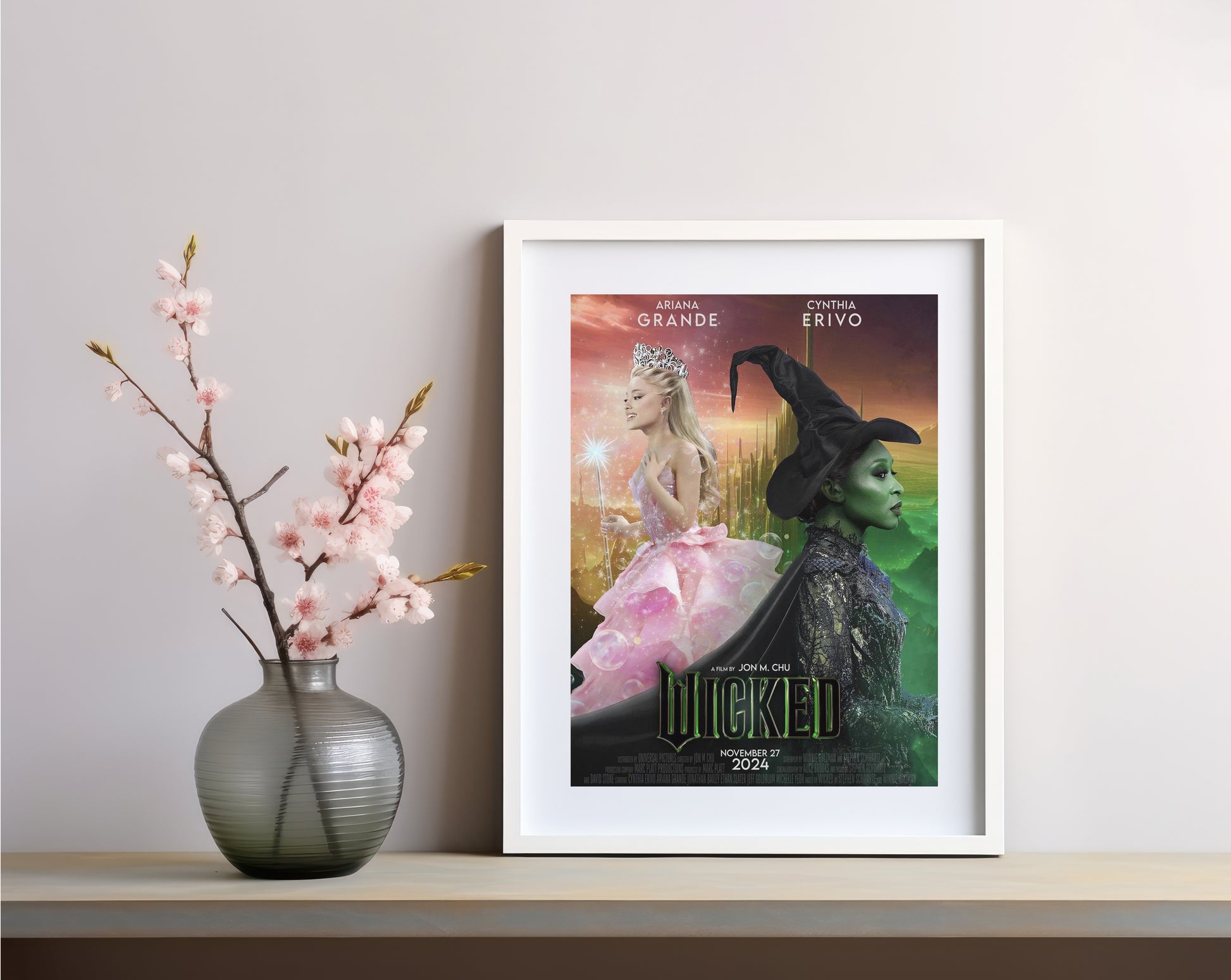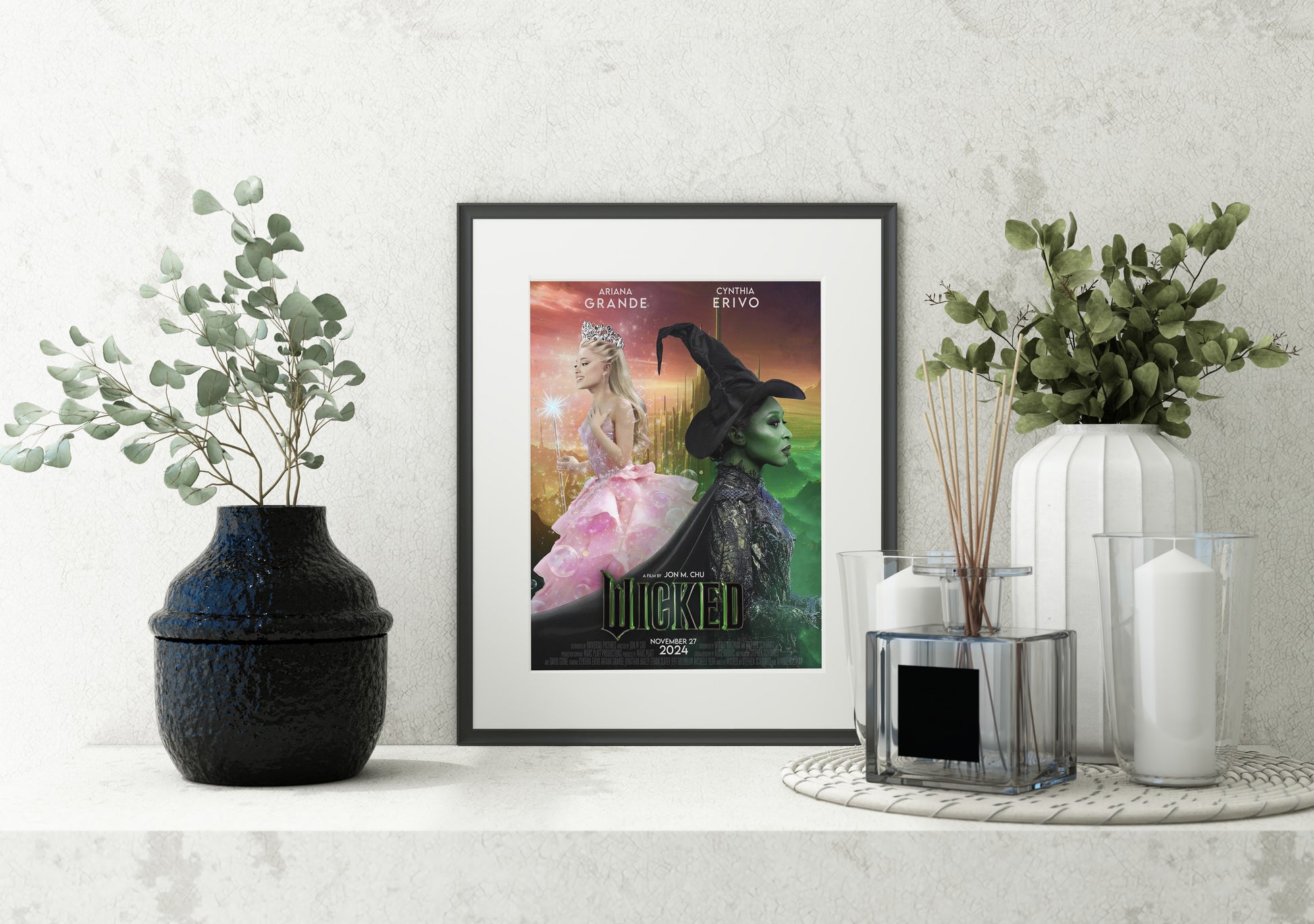 Bring the magic of Oz straight into your home with this fabulous Wicked Movie Poster! Featuring the dynamic duo of Elphaba and Glinda in all their glory, this print celebrates the Broadway sensation that has everyone belting out "Defying Gravity!" at the top of their lungs. Ready to frame and display, this poster is your ticket to adding some serious theatrical flair to any room. Mix and match it with other prints to create your own enchanted gallery wall, or let it shine solo as a stunning focal point. Transform your walls and celebrate the magic that makes Wicked so wickedly wonderful!